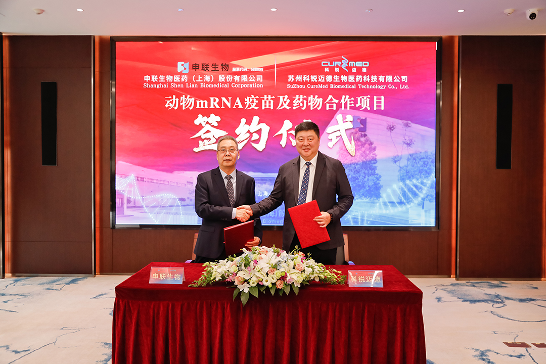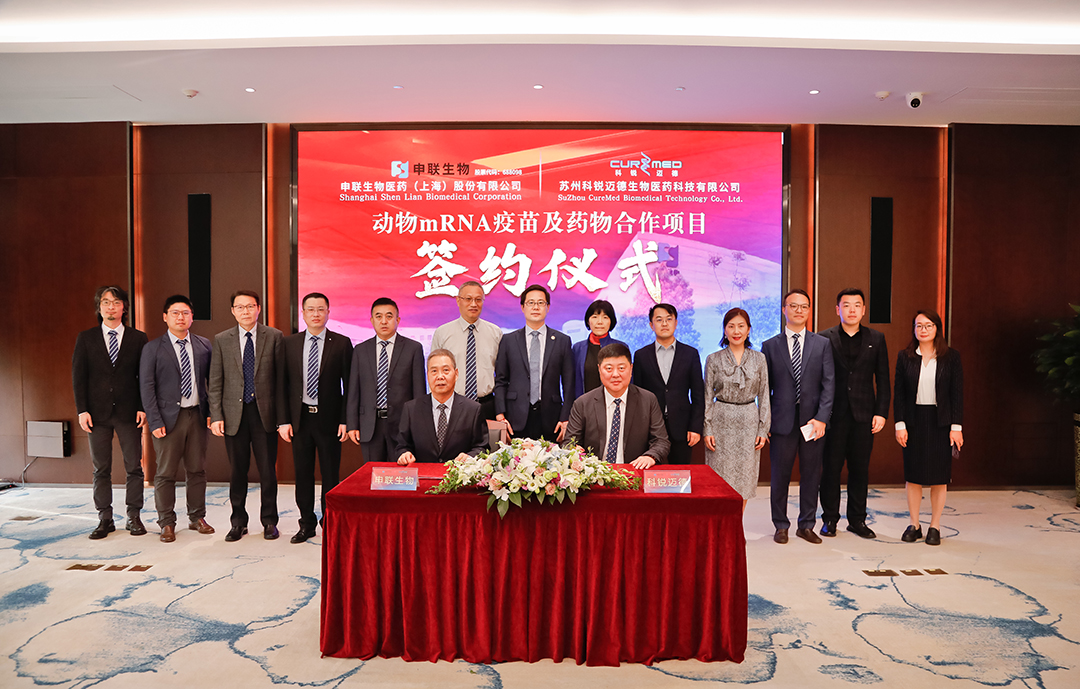 2023年4月18日,AG庄闲集团生物医药(上海)股份有限公司与苏州科锐迈德生物医药科技有限公司在上海紫竹高新区举行“动物mRNA疫苗及药物合作项目”签约仪式。上海紫竹高新区管委会副主任、上海紫竹高新区(集团)有限公司副总经理夏光,招商总监任曼,AG庄闲集团生物董事长聂东升,科锐迈德董事长刘毅翔及双方项目相关核心人员出席了仪式。