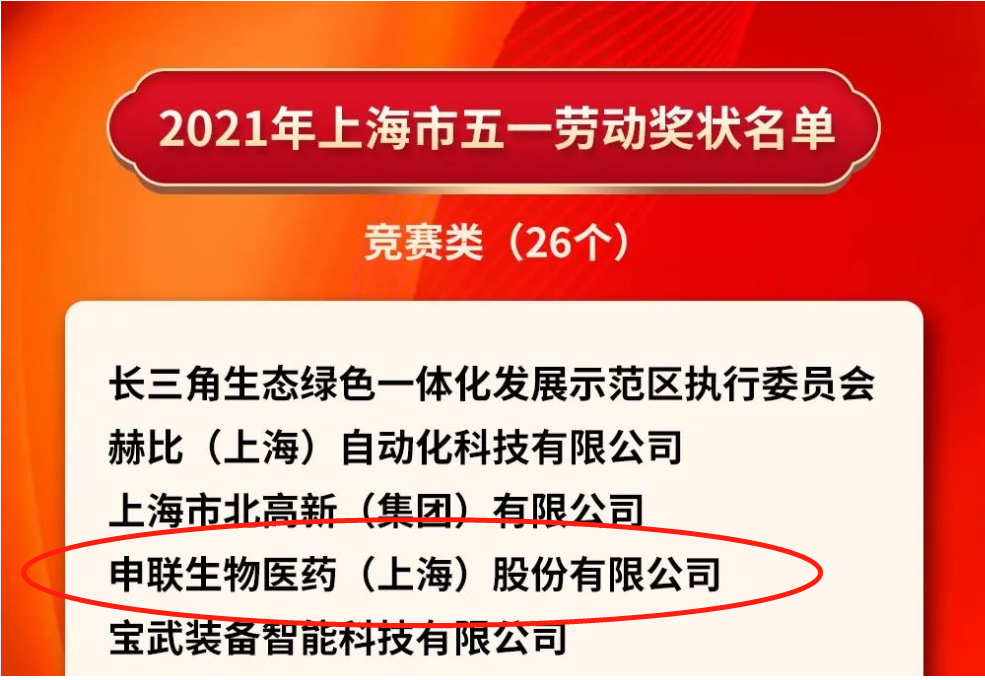 10月14日,AG庄闲集团生物医药(上海)股份有限公司喜获“2021年上海市五一劳动奖状”殊荣。上海市五一劳动奖状评选由上海市总工会主办,重点聚焦“三大任务”、“一大平台”、“五个中心”以及“四大品牌”建设等重大任务。