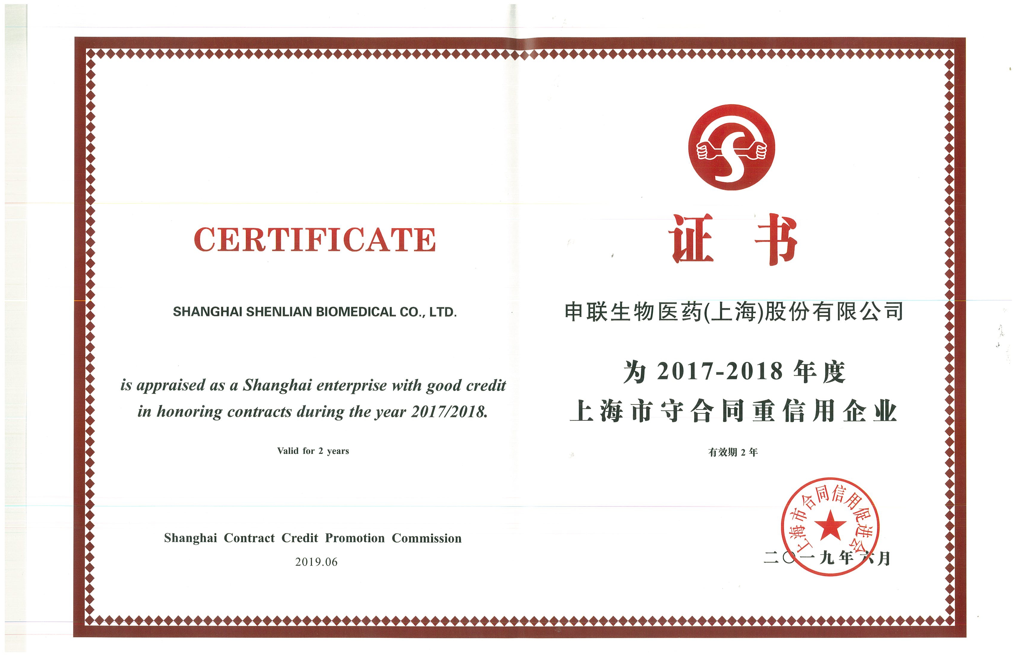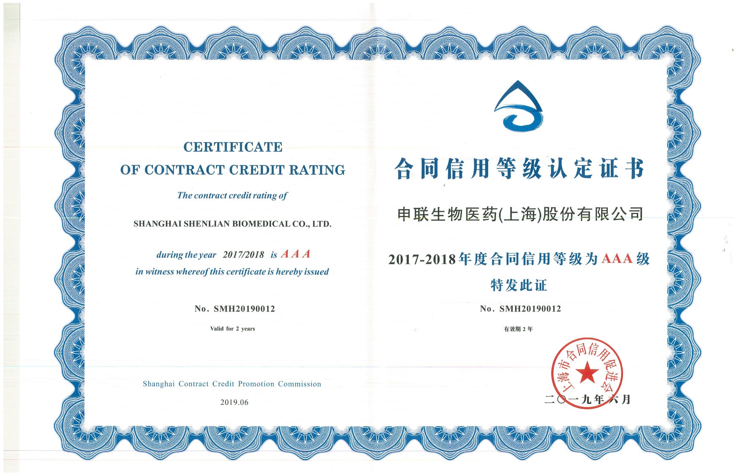 近日,经上海市合同信用促进会的综合考证及专家评审委员会审核,AG庄闲集团生物被评为“2017-2018年度重合同守信用企业”、“2017-2018年度合同信用等级AAA级等级认定”,并颁发奖牌及证书。这是公司开拓市场、强化管理、规范运作获得有关主管部门的制度化认可的重要标志。