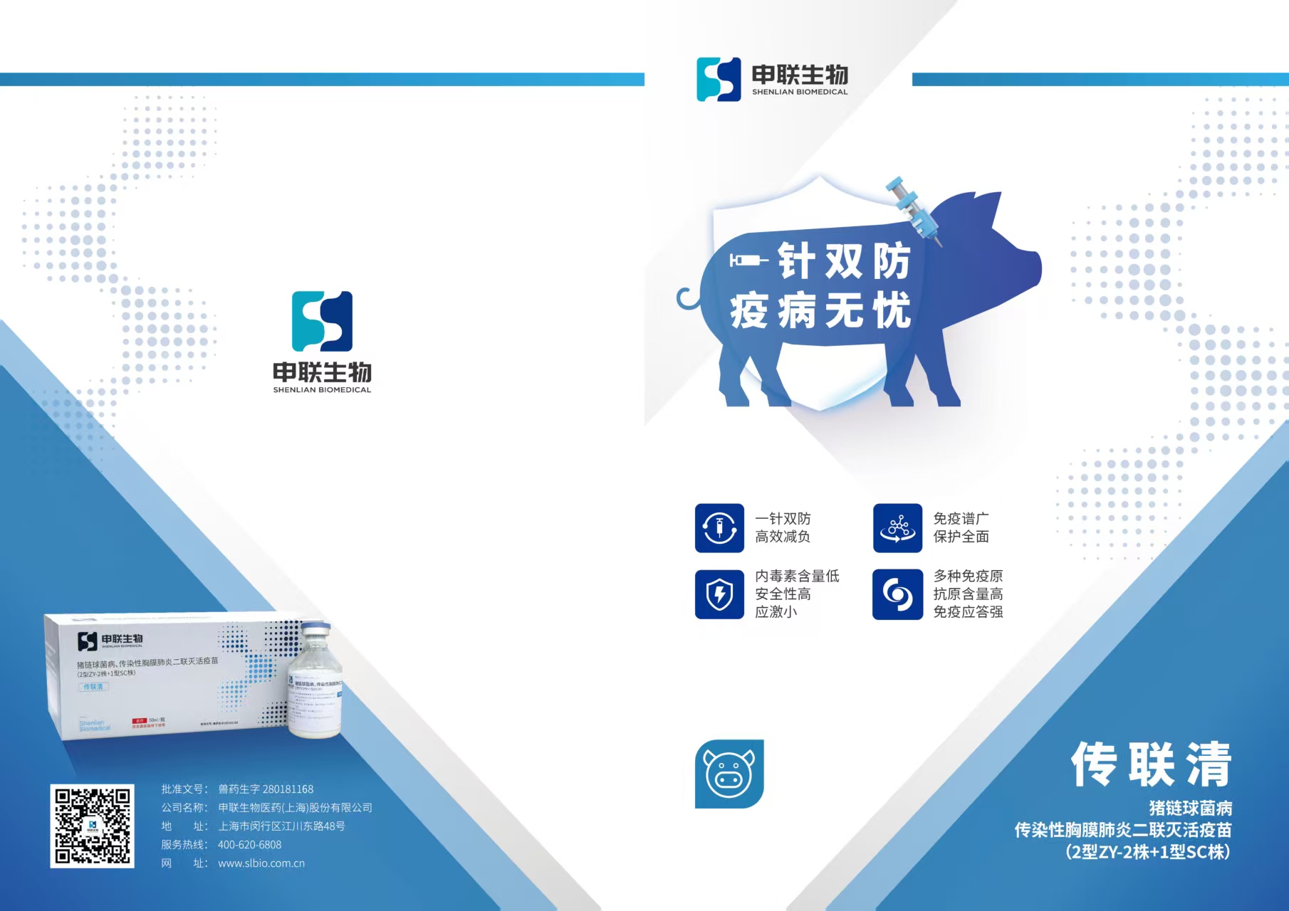 该产品聚焦国内主要致病血清型——猪链球菌2型(SS)和胸膜肺炎放线杆菌1型(APP),采用精准菌株、精准灭活、佐剂优化等多重核心科技,实现“一针多防、高效防护”,为我国养殖业在“饲料禁抗”背景下提供了新的疫病防控解决思路。